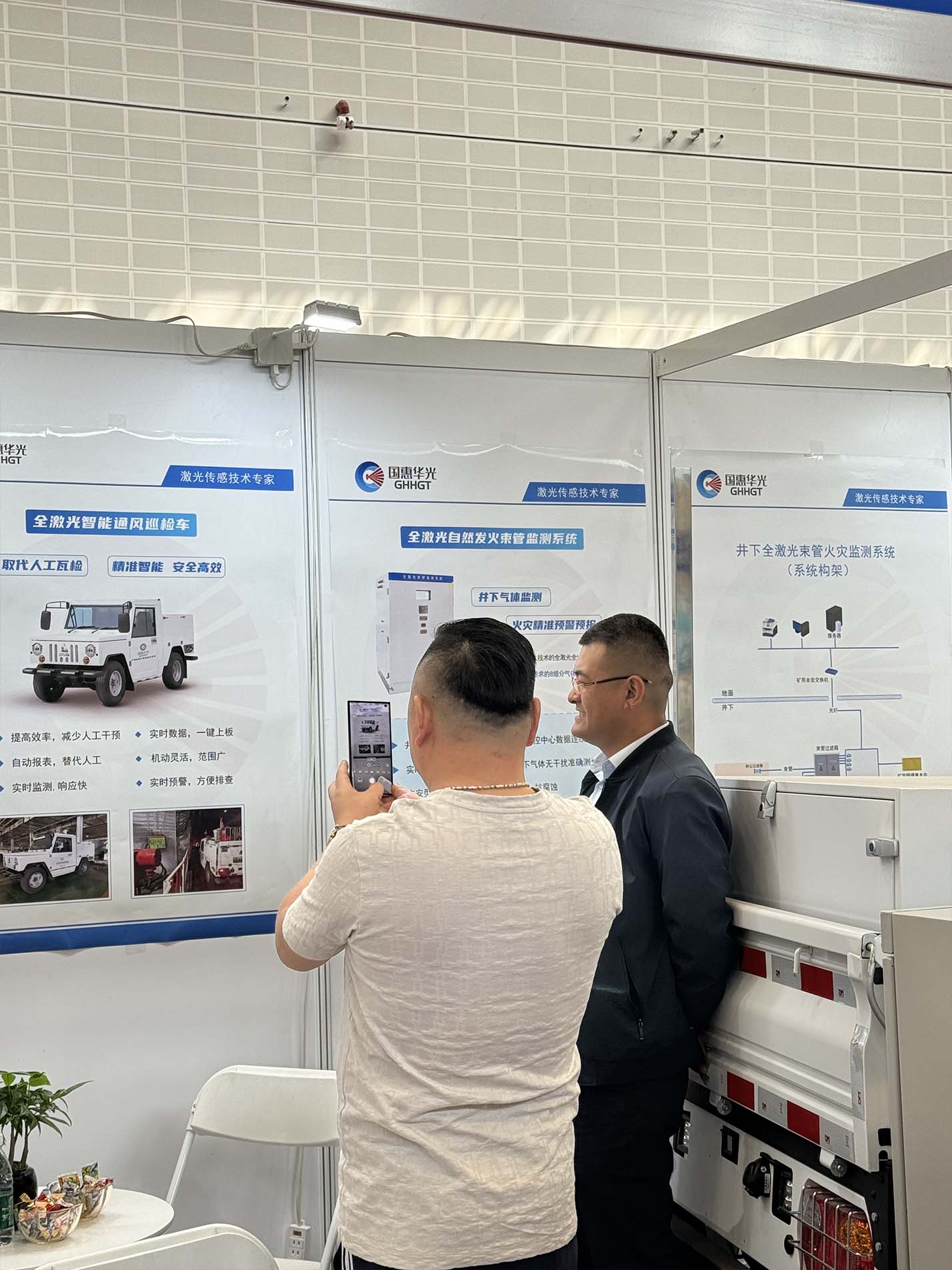 本次展會(huì),國惠華光展出了“全激光智能通風(fēng)巡檢車”“全激光自然發(fā)火束管監(jiān)測系統(tǒng)”兩大核心產(chǎn)品,吸引眾多業(yè)內(nèi)伙伴前來咨詢探討,客戶們對我司的產(chǎn)品表現(xiàn)出了濃厚的興趣,并給予高度的評價(jià),現(xiàn)場熱鬧非凡。